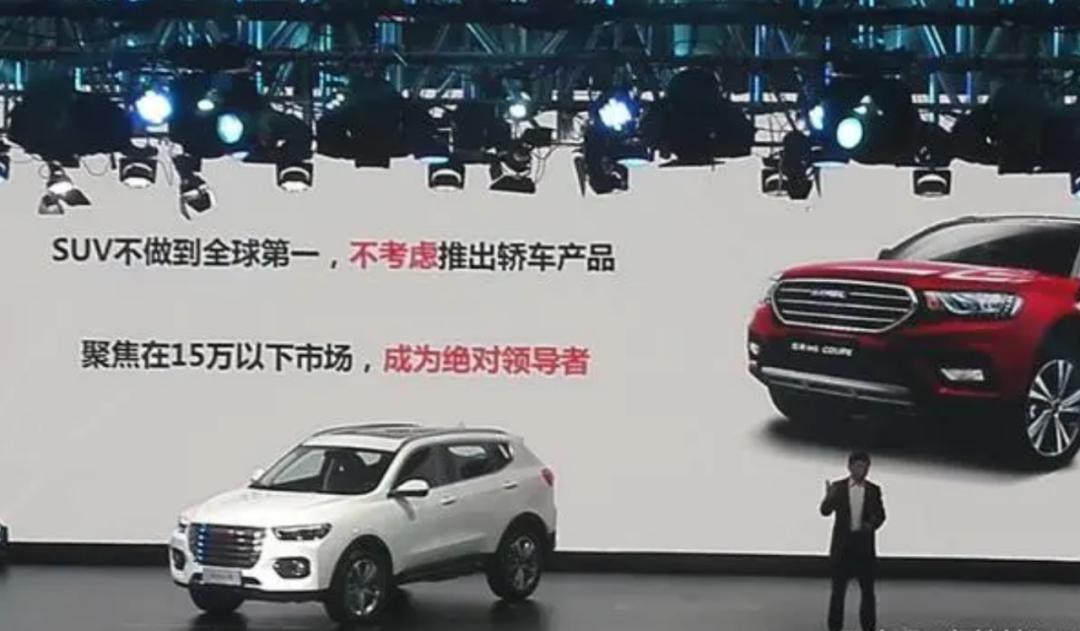 而在2014年,时任长城汽车总裁的王凤英和董事长魏建军,在长城科技节的媒体群访中强调:“长城汽车将暂停轿车项目的开发,聚焦SUV领域,力争让哈弗SUV成为全球一大SUV生产商。”