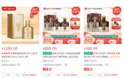 京东商城显示,藏品十年52度销售价格为1299元,销售价格出现倒挂,且评论仅有6条。根据京东平台的销售情况来看 ,舍得老酒系列的销量并不太好。