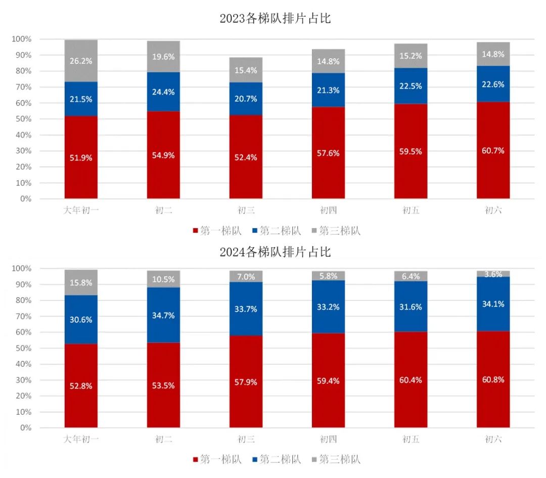 图7第一梯队排片占比与2023年相当,第二梯队占比大幅上升