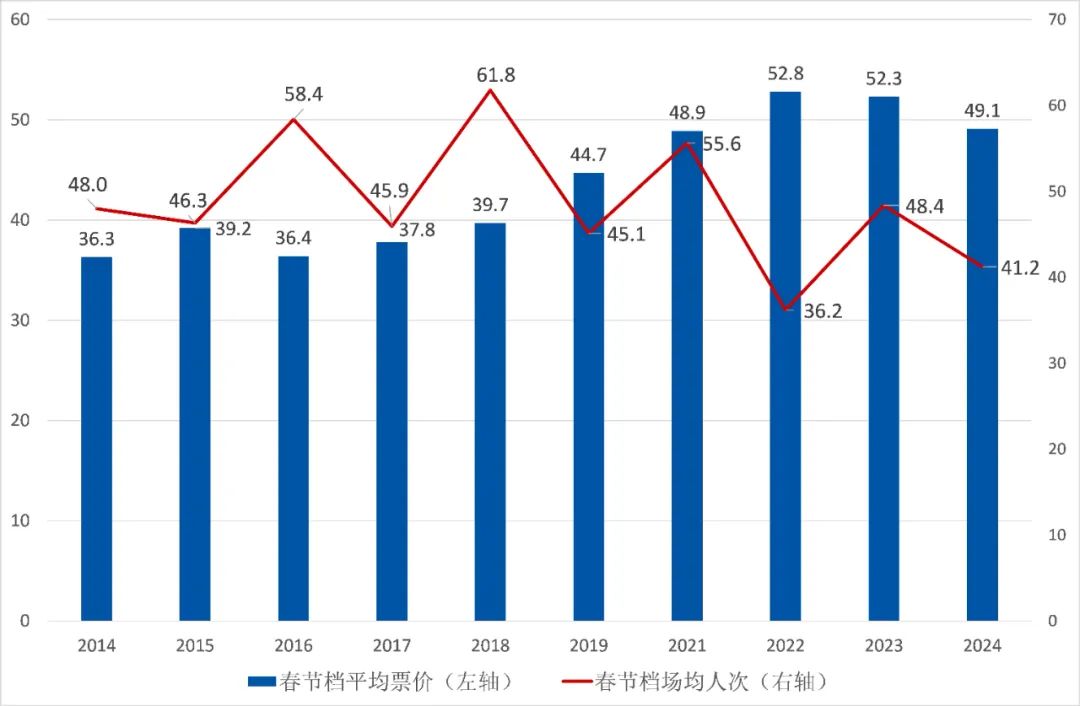 站在市场表现的视角上,2024年的春节档到底如何呢? 从 数据来看,今年春节档的单日票房反映了春节期间电影市场的基础观影需求量; 2024年的春节档当前的表现主要受今年假期安排的特殊性推动。 影响档期真实表现的首要 因素仍为场均人次,优质内容是推动电影市场增长的关键。