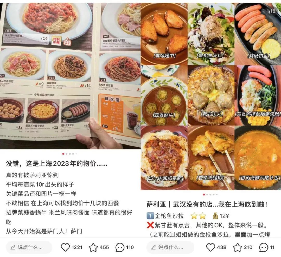 眼看着高价之路行不通,萨莉亚便委身当起了必胜客平替。做法也很简单:疯狂降价。必胜客卖28元的意面,萨莉亚只要18元,还要一再地打3折降至9元,客流量也因此从一天250多人飙至1000多人[14]。