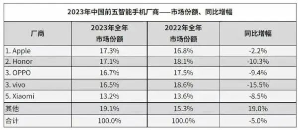 一个很重要的指标是出货量的下滑。调研机构IDC在2024年1月发布的数据显示,2023年全球智能手机出货量为11.7亿部,同比减少3.2%,创下了10年来出货量新低。