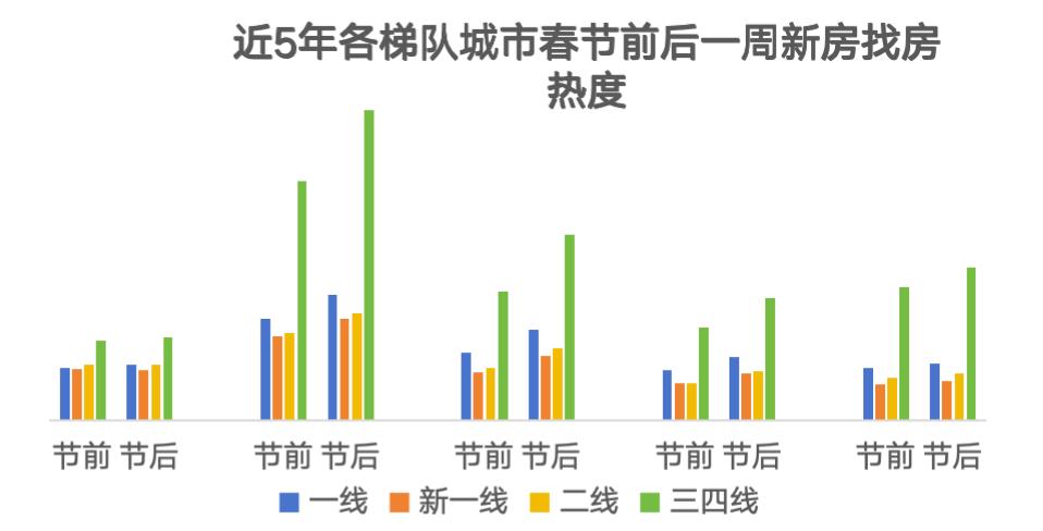 此外,据58安居客分析,今年春节返乡客流恢复正常,前期受压抑的娱乐消费、出入境旅游等恢复常态并且呈增长趋势,团圆和娱乐的热情高涨,这也使得2024年春节整体看房热情较过往几年逊色,节后一周的新房找房热度涨势表现落后于往年。