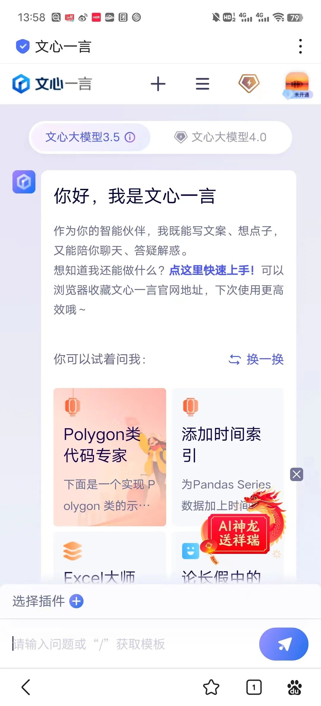 2023年10月,百度将旗下的传统搜索升级为AI互动式搜索引擎。在此之前,百度还在搜索页面内置文心一言大模型技术,用户可以给文心一言提出任何问题,实现Chat AI对话功能。
