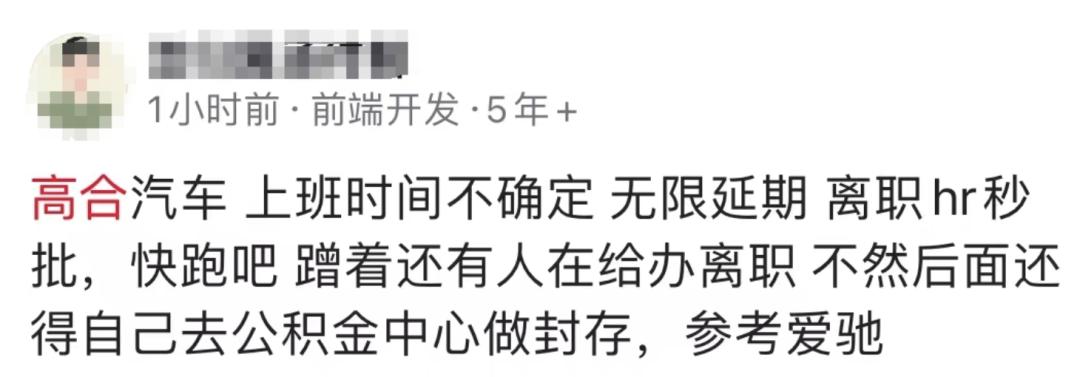 “上班时间不确定,无限延期,离职hr秒批,快跑吧,趁着还有人给办离职,不然还得自己去公积金中心做封存,参考爱驰。”