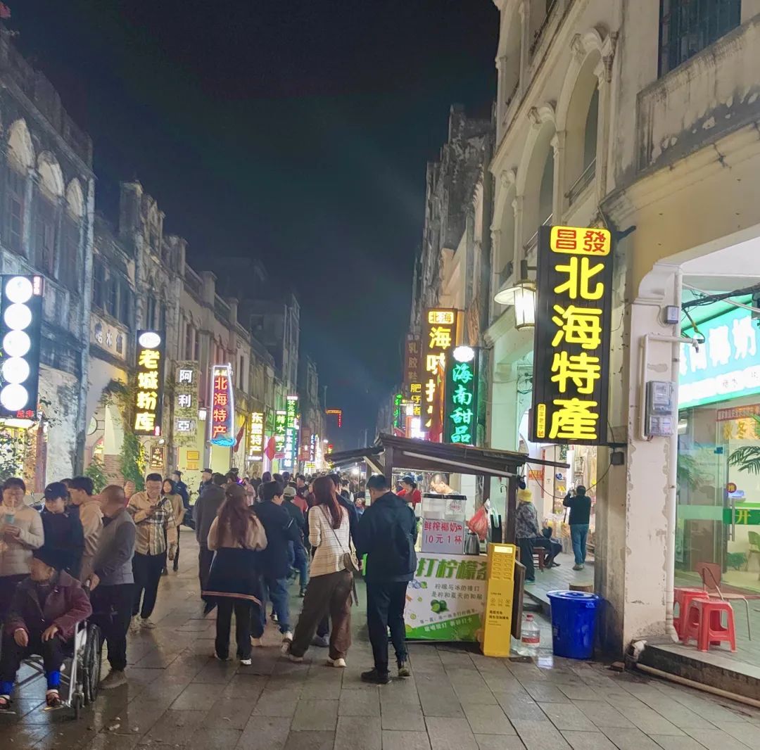 攀谈中,老板告诉我们,老街上的小店,有的是老板自己的物业,也有租的,一楼50平米左右的门脸,每月房租4500-5000元。我惊叹,房租真便宜,难怪菜品价格如此便宜。这里客流如云,老板们岂不是“赚大发了”?老板却告诉我们,北海老街的店铺,平时没什么生意,勉强能覆盖人工房租,真正赚钱的只有半年,也就是春节、五一、暑假、十一、寒假等节假日。