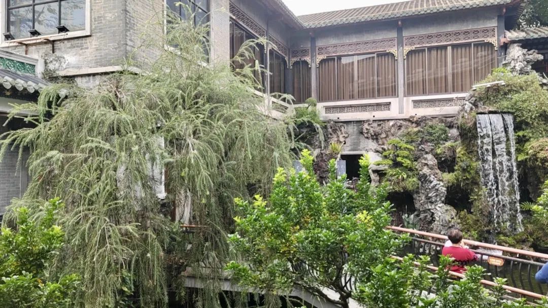 泮溪酒家位于荔湾湖公园里,是广州核心区荔湾区的一个景点,景区内停车不易。但其实它正对着广州酒家,两家当地的著名酒楼(乃至整个景区)共享一个地下停车场,从B3坐电梯上到地面就是泮溪酒家。原以为泮溪酒家跟广州酒家一样,就是一个老字号,但想不到进到里面却别有洞天:这哪里是饭馆呀,完全是一个岭南园林——古香古色的粉墙黛瓦建筑,大榕树遮天蔽日,假山、鱼池、回廊,以及湖心和半岛餐厅等,占据了半个荔湾湖,边吃饭喝茶边欣赏如画美景,低调而奢华。