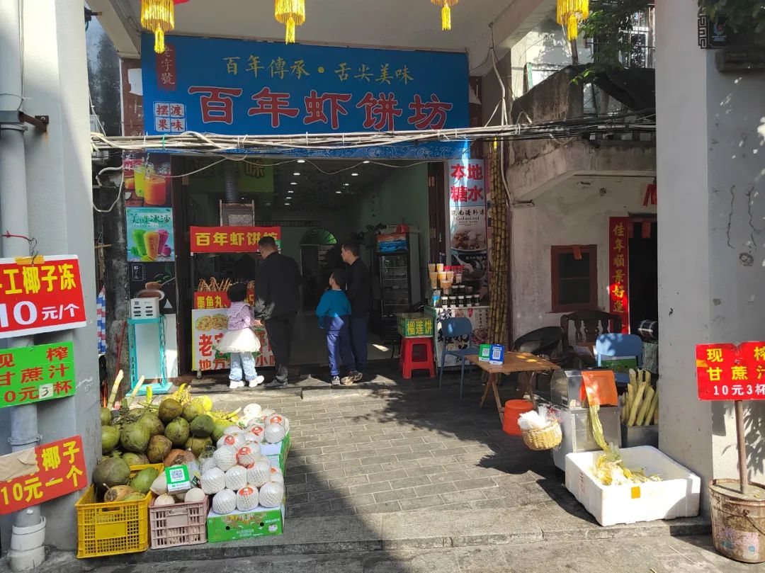 老街上,三五步距离就有一家苍蝇小馆,而每家小馆外面的广告牌都写着:百年虾饼5元/个,烤生蚝1元/个等大字,让每位游客觉得便宜到“爆”。每个小馆,有人在拉客,有人在门口清洗当天送来的生蚝、鲍鱼等海鲜,有人在炭火上烤生蚝,有人在油锅里炸虾饼,香气四溢,不要太诱人。中午时分,我们走进一家小馆吃饭,点了烤生蚝、鲍鱼,虾蟹粥等够吃的饭菜,总金额加起来刚100元出头,怎一个“爽”字了得?