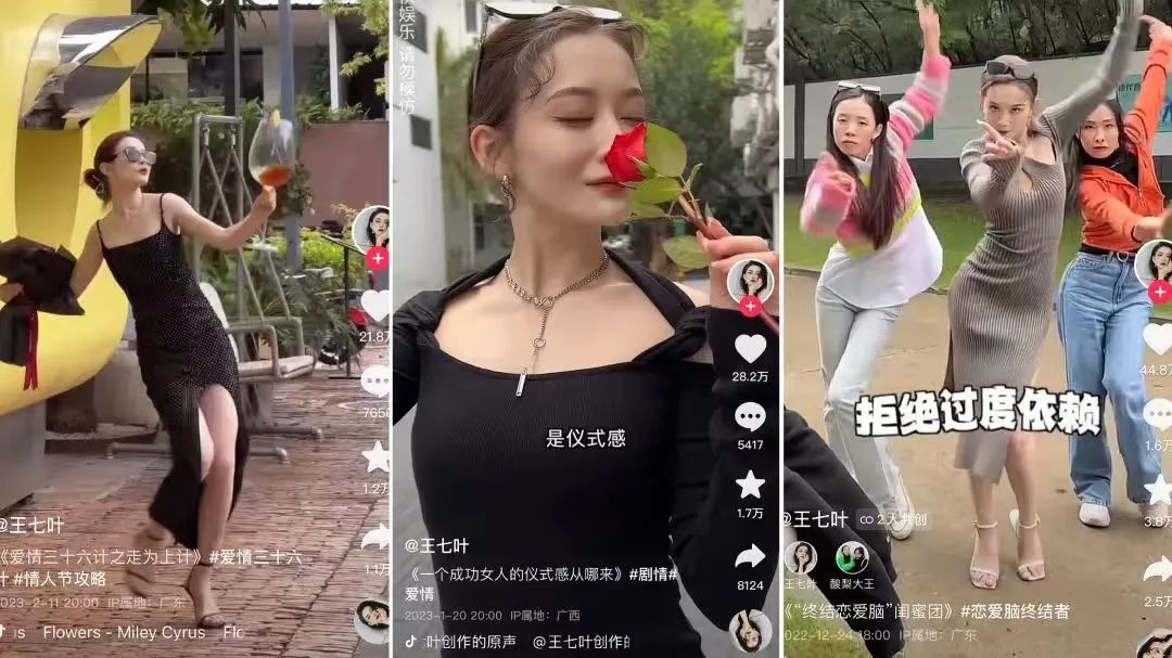 剧情账号@王七叶 、@董赤赤 能够爆火,外在形象与内在特质的巨大人设反差感无疑是一个重磅亮点。尤其是@王七叶,从人设来看,不论是颜值、身材、穿搭、还是舞蹈功底,她都算得上是货真价实的高颜值女神,但从表现力来看,她却是一个放得开、接地气、豁得出去的“女神经”,可以在视频中做出各种与外在形象反差强烈的魔性行径,并以此为基础延展出各种创意剧情,由此形成了账号的差异化特色。