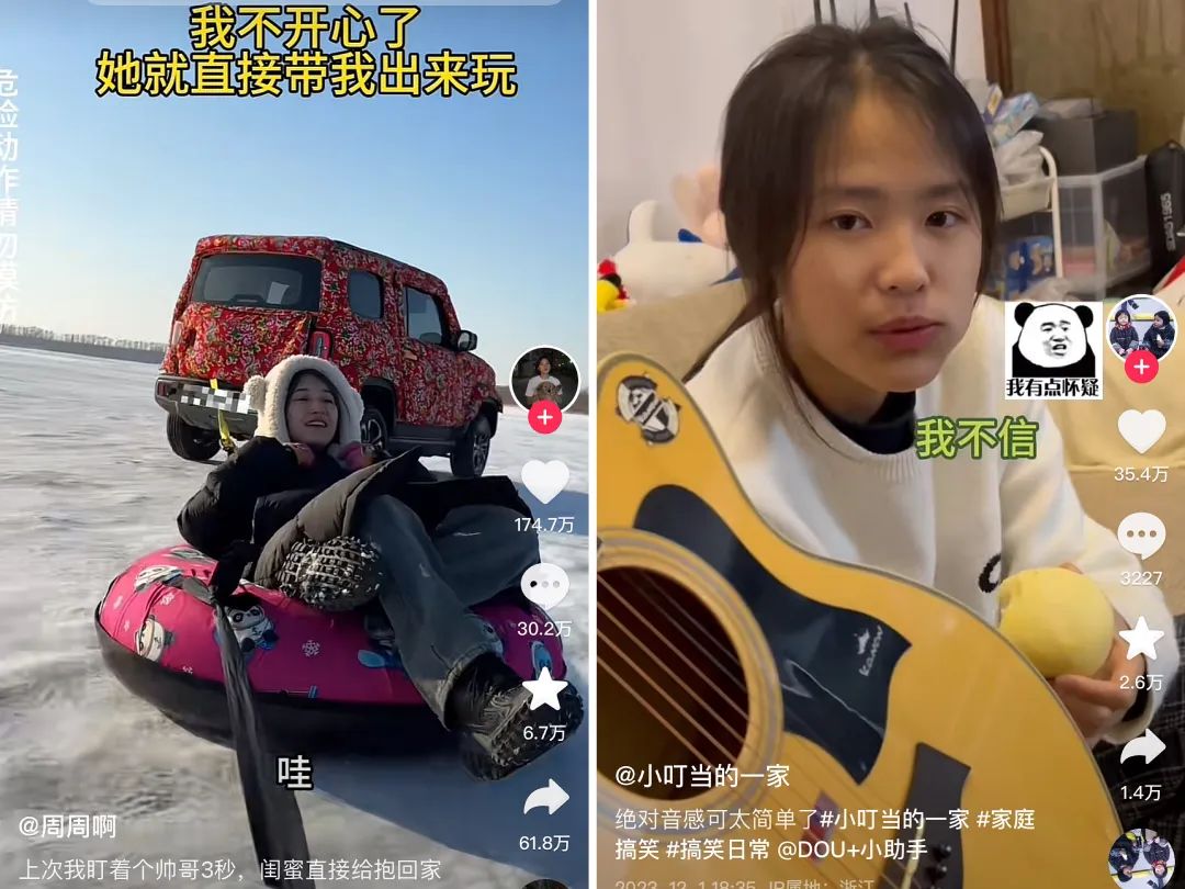 ● 用vlog形式呈现的生活化搞笑剧情,多聚焦于家庭日常、朋友日常,如账号@董赤赤、@周周啊、@小叮当的一家 等账号均属于此种类型。