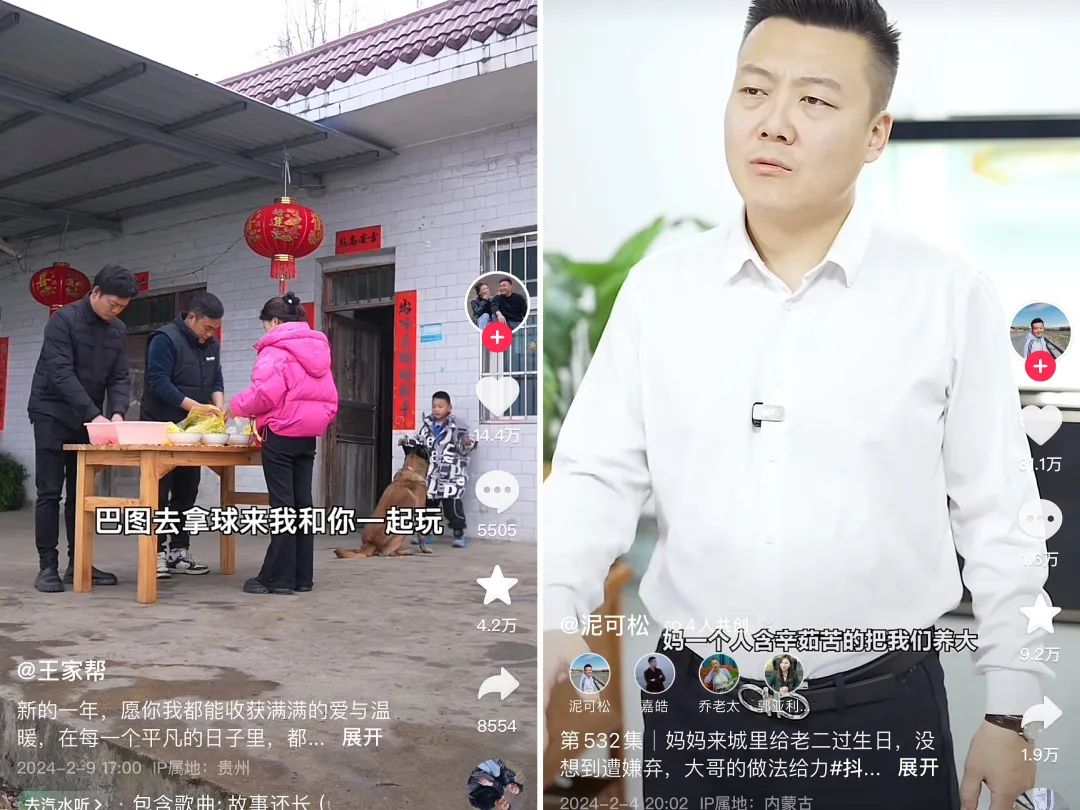 ●围绕着人情世故展开叙事的正能量剧情,擅长从家长里短、为人处世等层面构造生活化的戏剧性情节,从中凸显正能量内核,以此吸引粉丝关注。比如@王家帮、@泥可松、@阿乐哥哥 等账号均属于此种模式。