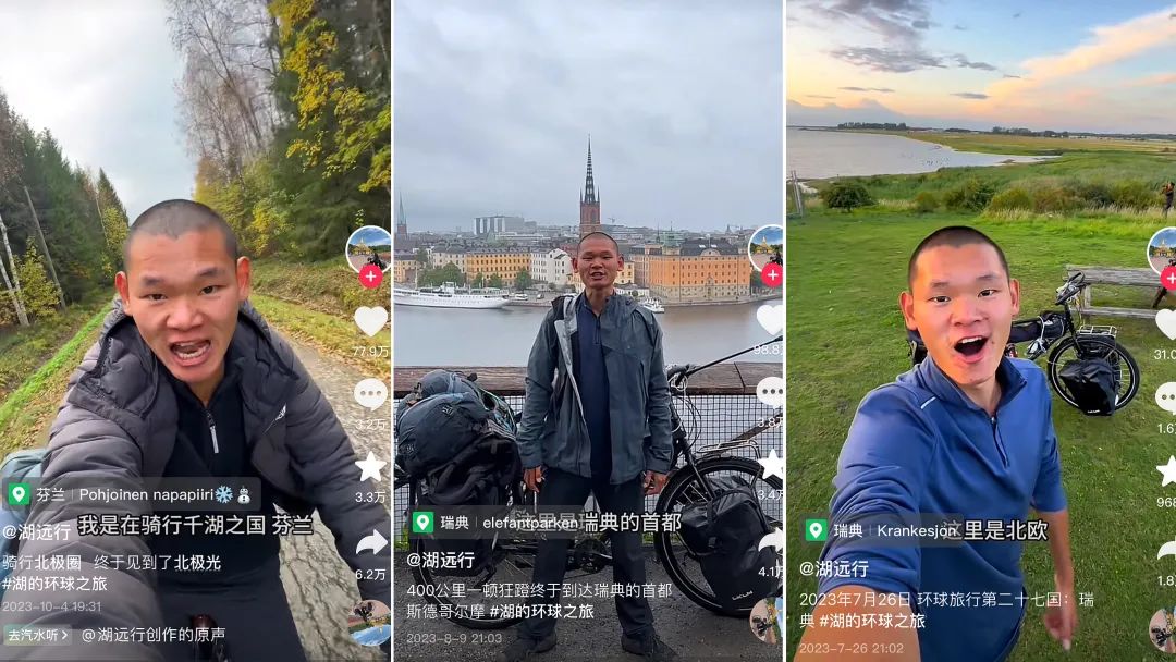 旅行账号@湖远行 记录了自己的骑车环球之旅。通过他的镜头,我们不仅能领略世界各地的风光,也能从他身上感受到年轻的勇气和蓬勃的生命力。