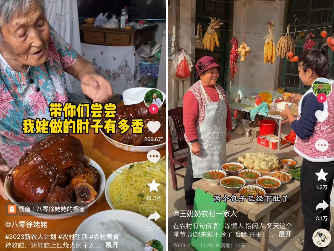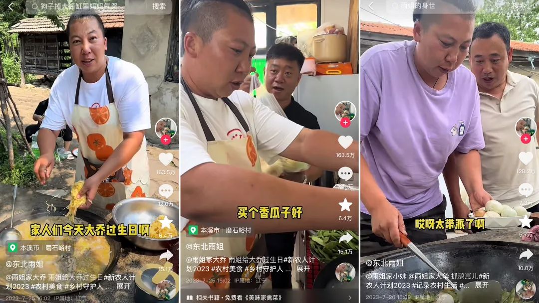 一是以@东北雨姐、@八零徐姥姥、@王奶奶农村一家人 等为代表的乡村美食账号,凭借着浓郁热烈的乡土风情和扑面而来的烟火气,抓住了众多用户的心。其中,越真实、越接地气、越能展现真情实感的乡村账号越容易受到用户的关注。