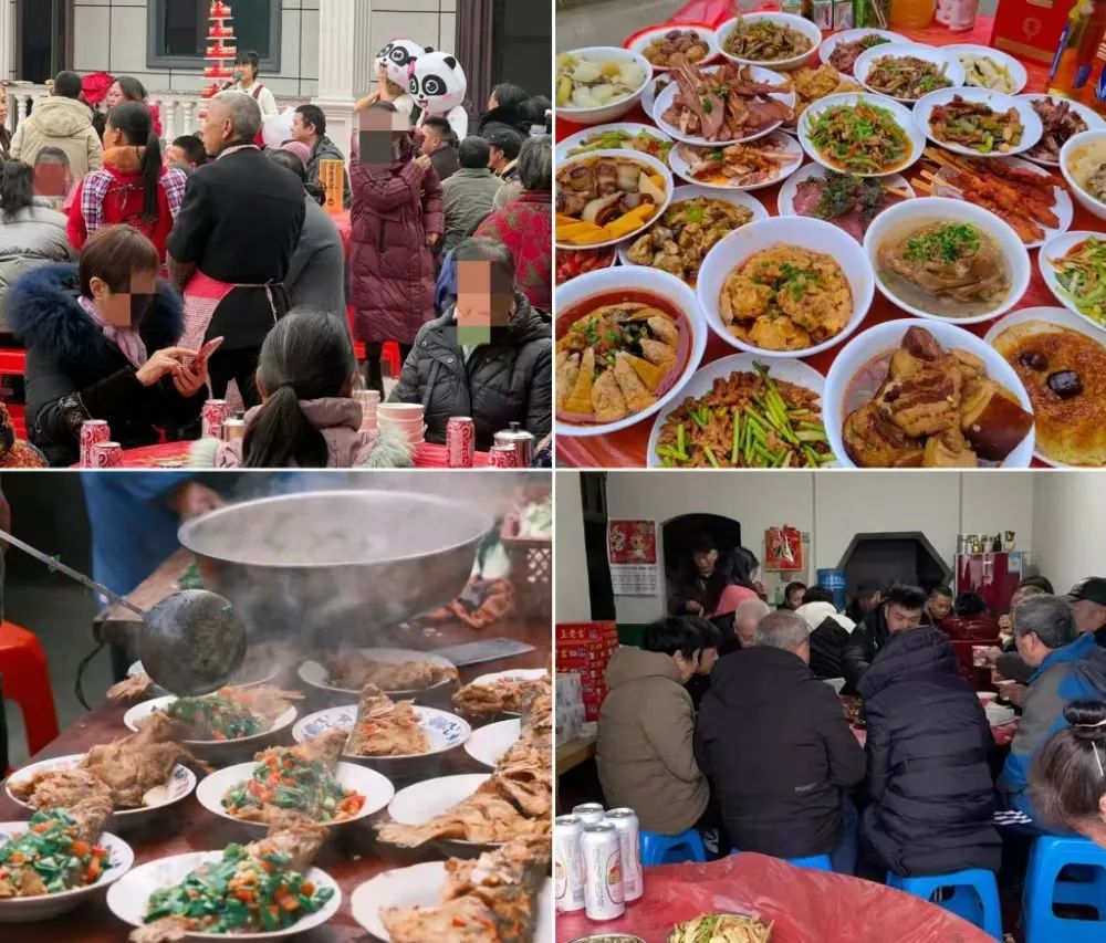 以前都说回村里吃宴席非常有烟火气,而今年给内参君的感觉是,看似热闹的聚餐场面,主打一个环境嘈杂,饭菜提前做好上桌,等人们做好开席就基本没了热乎气儿,而且鲜有“大菜硬菜”,快吃快撤,匆匆忙忙,也顾不上叙旧聊天了,如果每年都是这样的聚餐现场,反倒是更没了团圆的氛围,倒不如在家里吃预制菜年夜饭有烟火气了。