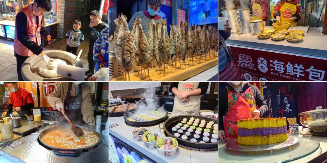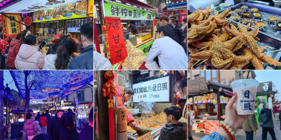 日照东夷小镇,是当地人招待外来客人必去的打卡圣地,大年初二,夜色降临,人头攒动,各类网红小吃紧锣密布、争相邀客。