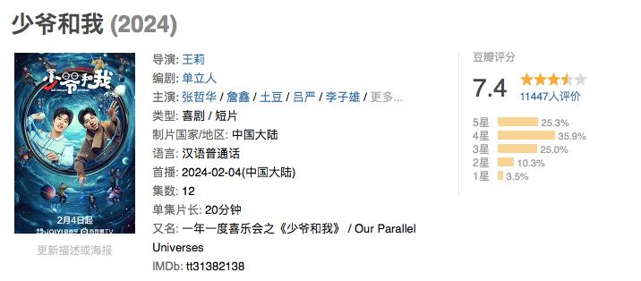 口碑方面,爱奇艺“小逗剧场”的《少爷和我》拿到了7.4的豆瓣开分,这在短剧市场已属不错的成绩。作为爱奇艺王牌喜剧综艺《一年一度喜剧大赛》的衍生定制短剧,该剧由制作过《破事精英》《爱情公寓5》等多部喜剧的爱奇艺芝麻荚工作室打造,融入了民国、现代、武侠、无限流等多种元素,让行业再次看到综艺与剧集联动的可行性。