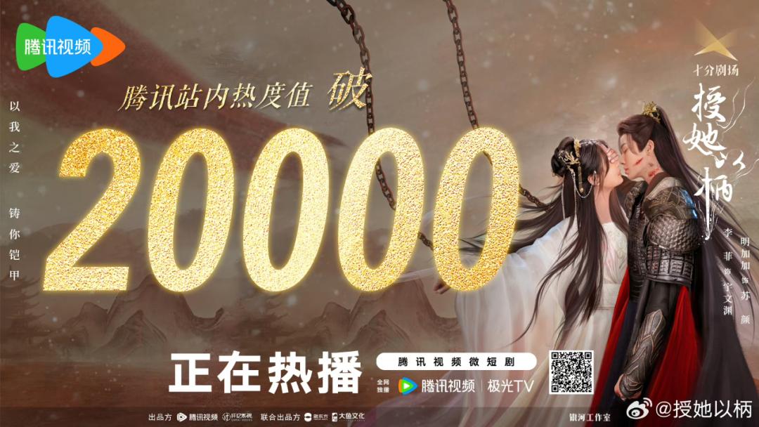 热度方面表现突出的当属腾讯视频的古装爱情微短剧《授她以柄》,上线后站内热度迅速突破20000并连续多日登顶猫眼短剧热度榜,#李菲 授她以柄#、#授她以柄后劲好大#、#授她以柄he还是be#等话题屡次登上微博热搜。