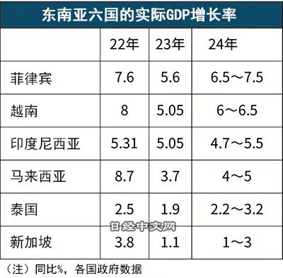 东南亚6个主要国家的2023年实际GDP增长率均低于2022年,预计2024年仅有小幅改善。作为东南亚的主要贸易对象,中国经济的放缓给各国带来影响。当地的旅游和服务业也受到波及……