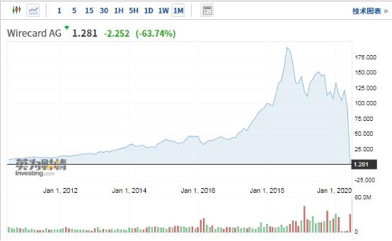 Wirecard一度将近2000亿欧元的市值,仅剩20亿欧元,被法兰克福交易所停牌。