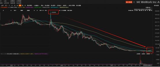 最终,上市成了闹剧,WeWork的股价从最高逼近600跌到2分。