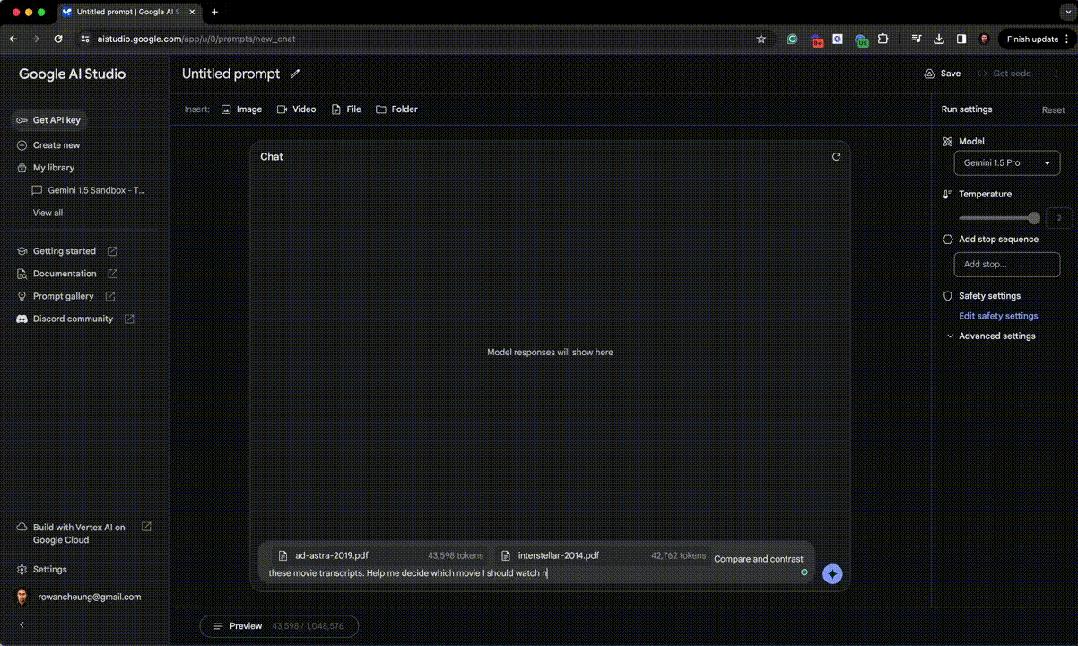 让Gemini 1.5 去理解比较两部电影的完整文字内容,来帮助他决定应该看哪部电影。