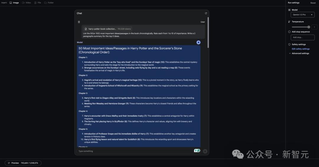 他让Gemini读取了整部《哈利·波特与魔法石》(共741,028个Token)。