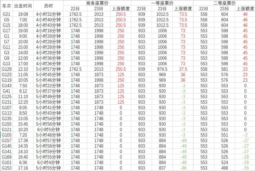 上图是澎湃新闻在2020年11月25日发布的京沪高铁票价的变动,通过上面图表可以看出,京沪高铁票价推出打折机制,这和以往铁路票价有明显区别,也看得出京沪高铁在票价上的不断探索,这样的探索带来了相应收益,但这样的票价机制也引来消费者的反馈,认为是变相“涨价”。