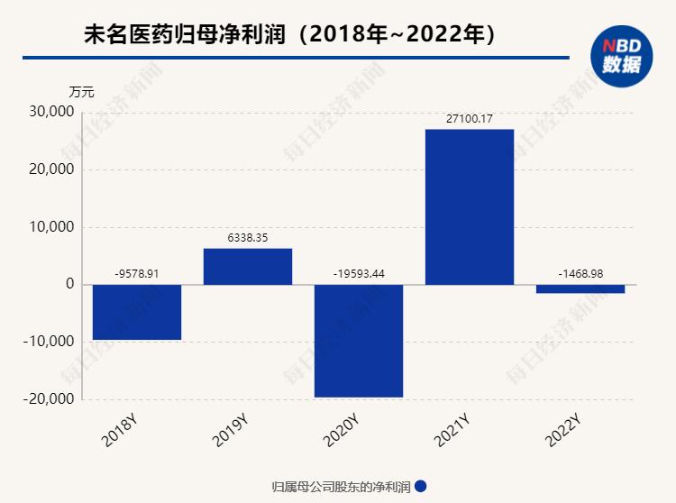 然而,经历一波动荡之后,未名医药的业绩也一路向下。根据2023年业绩预告,相比2022年净亏损1468.98万元,未名医药2023年归母净利润预计亏损2.43亿元—3.45亿元。
