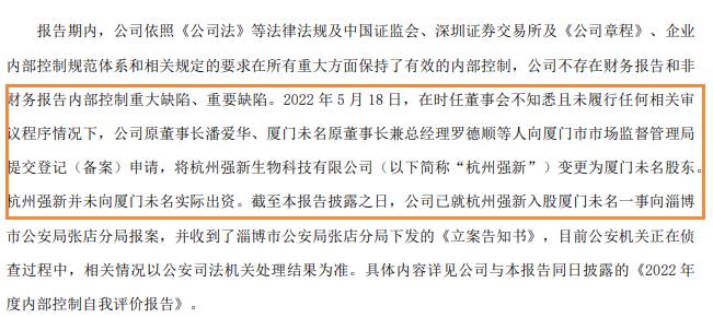 未名医药在2022年财报中提到,2022年5月18日,在时任董事会不知悉且未履行任何相关审议程序情况下,公司原董事长潘爱华、厦门未名原董事长兼总经理罗德顺等人向厦门市市场监督管理局提交登记(备案)申请,将杭州强新变更为厦门未名股东。杭州强新并未向厦门未名实际出资。