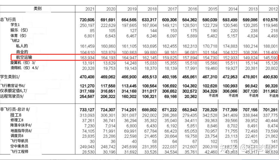 在飞行员数量上两国的差距更大,美国有16.2万名民航飞行员,注意这都是可以开大型飞机的飞行员,而中国目前只有2万名。众所周知要培训一名民航飞行员成本很高,尤其是时间成本,这一差距很难在短期内弥补。而且美国有大量开小飞机的通用航空飞行员作为人才储备池子,这方面中美之间的差距更大。