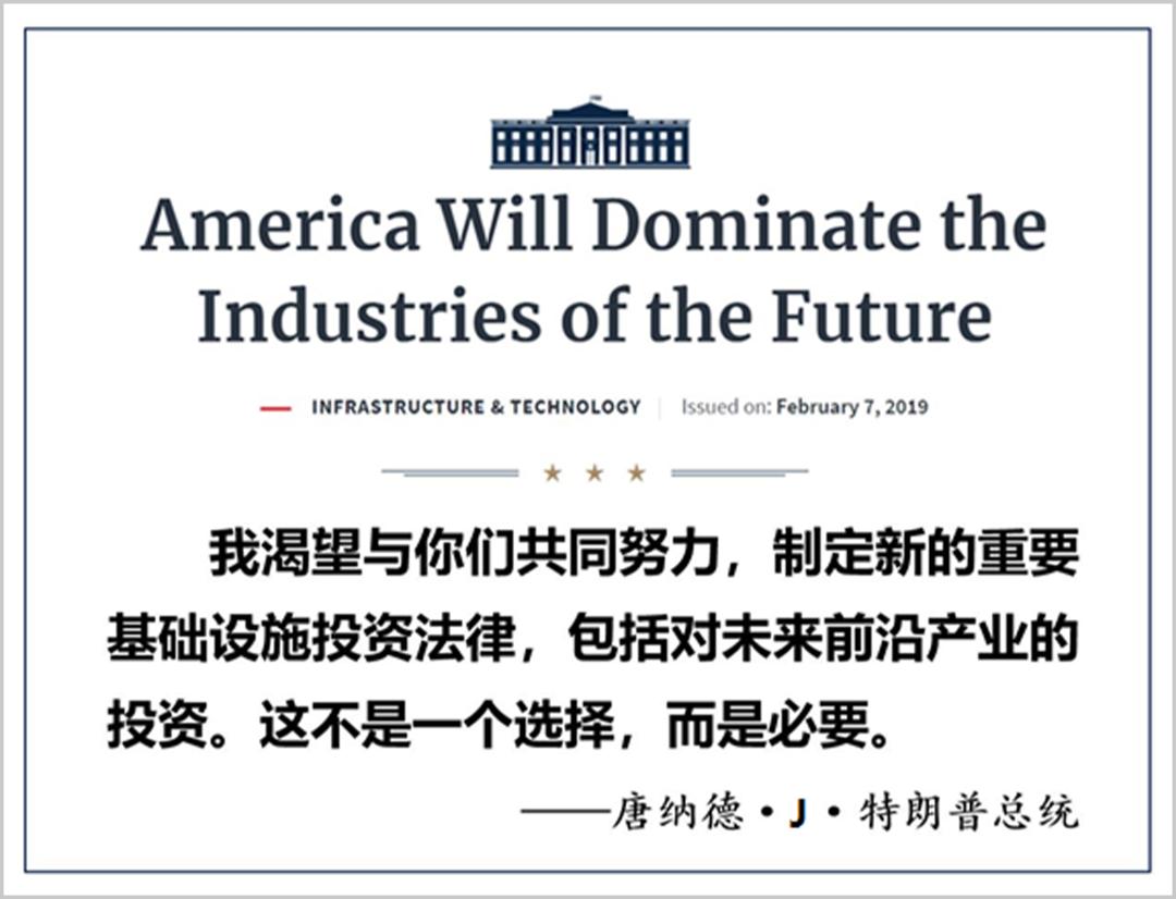 2019年2月7日,美国前总统特朗普大笔一挥,正式签发《美国将主导未来产业》。
