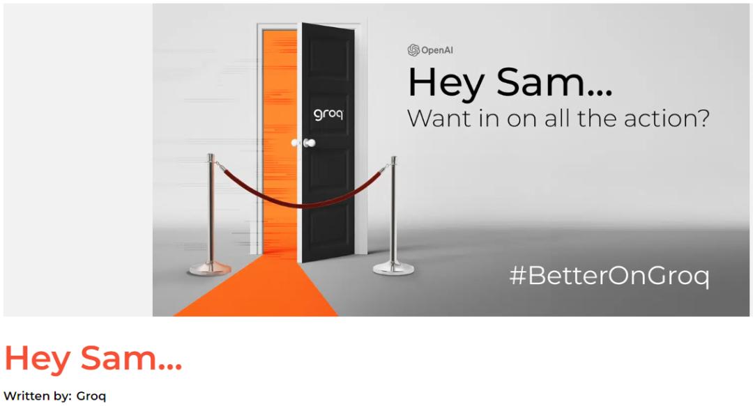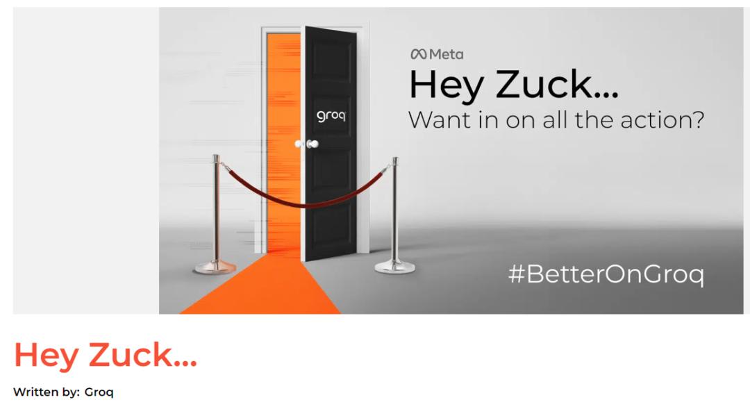 为了推广自己的LPU,Groq甚至在官网上喊话AI界大佬Meta的扎克伯格和OpenAI的阿尔特曼。