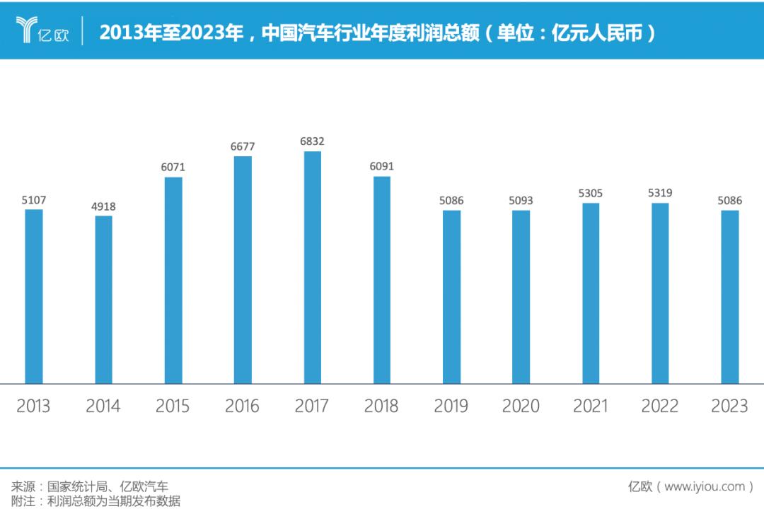 2023年,中国车市销量历史性突破3000万辆,行业总营收也历史性地突破10万亿元大关。但是,价格战和疯狂的内卷却让全行业的利润降至5086亿元,回到了2019年的水平。2019年中国车市年销量和全行业营收分别只有2576万辆和8万亿元,和2023年相比存在显著差距。