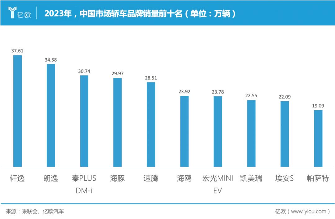 其实,比亚迪在2023年就曾以秦PLUS DM-i冠军版车型展开价格攻势,不到10万元的起售价让秦PLUS DM-i在2023 年销量突破30万辆,仅次于日产轩逸和大众朗逸。当时,比亚迪提出的口号“油电同价”也可以看作是今年“电比油低”的先河。