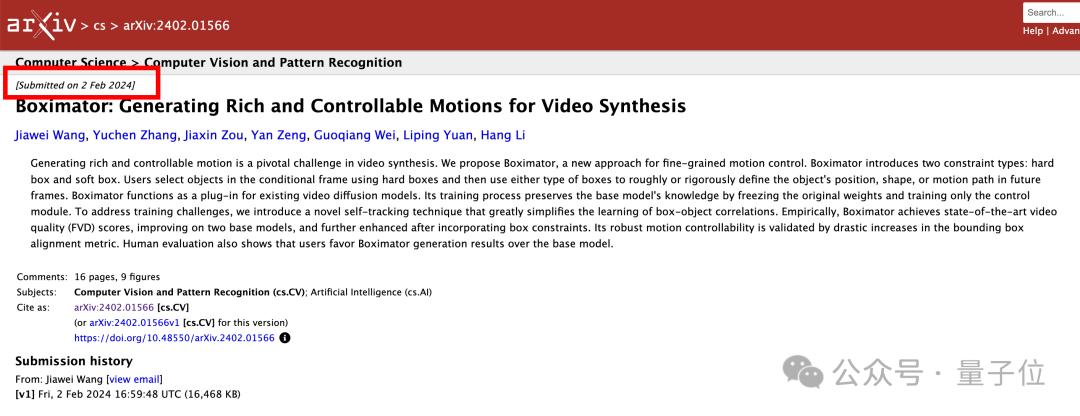 在Sora发布之前Boximator的论文就已经公布,由字节AI实验室总监李航领衔。