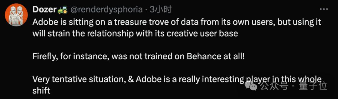 比如有人指出,Adobe坐拥大量数据,但要用过去创作者的成果去训练AI,就会与这些用户关系紧张。