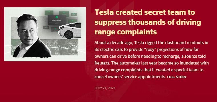 还记得去年7月,路透社披露了在特斯拉的内部组建了一个秘密团队,主要负责 压制数千名客户对续航里程不佳的投诉的新闻吗?没错,也是这个团队干的。