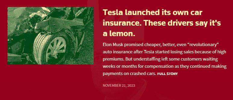 还有买了特斯拉自营保险的车主,需要 等待数月之久才能得到赔偿等一系列新闻。
