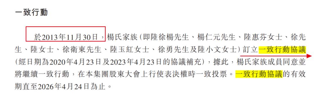 招股书显示,截至最后实际可行日期,根据一致行动协议,杨氏家族及其受控制实体为单一最大股东集团,能够行使公司合共约22.78%投票权。