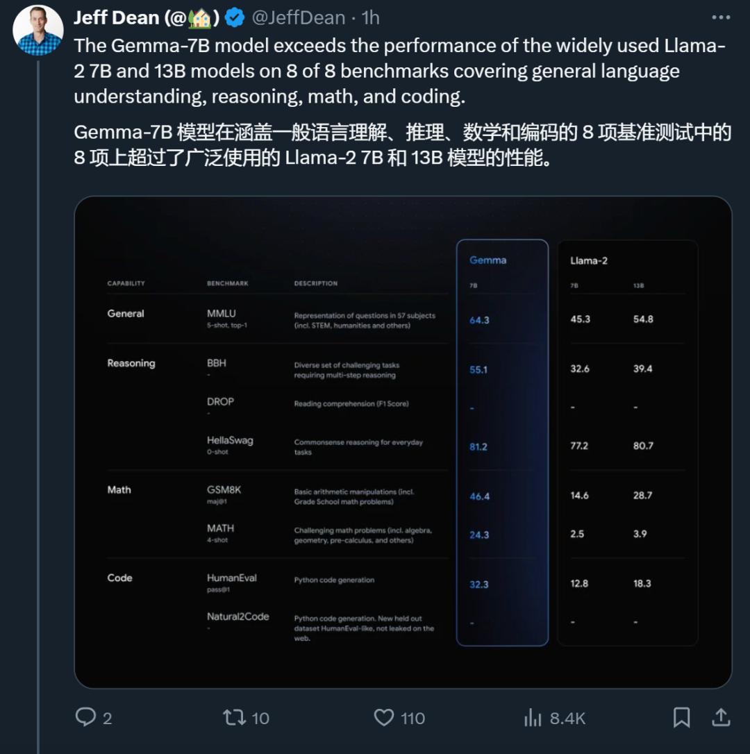谷歌这次没有预告的开源,或许是想抢在 Meta 的 Llama 3 之前一天,毕竟此前有消息称 Llama 系列本周就要上新(让我们期待第一时间的评测对比)。