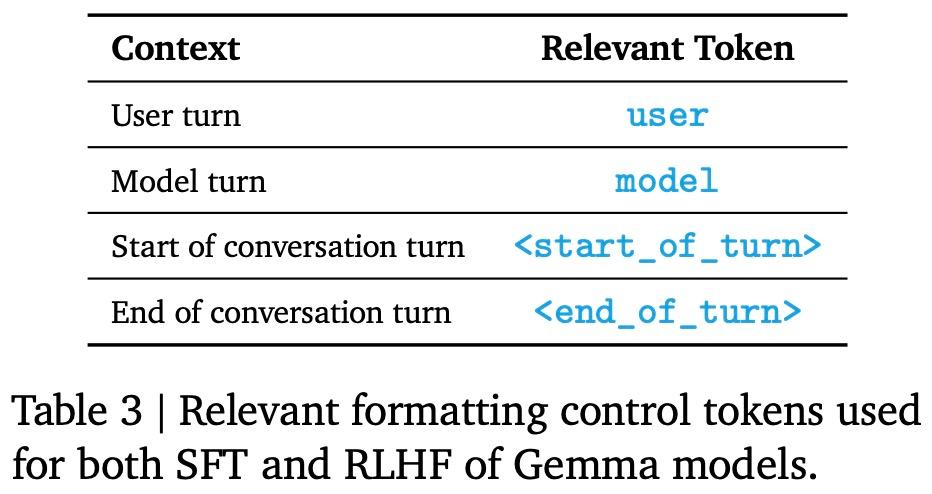 指令调优模型使用特定的格式化器进行训练, 该格式化器在训练和推理时使用额外的信息来标注所有指令调优示例。这样做有以下两个目的,1)指示对话中的角色,比如用户角色;2)描述对话轮次,尤其是在多轮对话中。为了实现这两个目的,谷歌在分词器(tokenizer)中保留了特殊的控制 token。