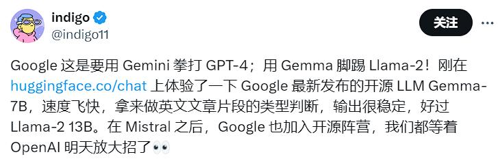 ▲X用户@indigo11分享Gemma试用体验(图源:X)