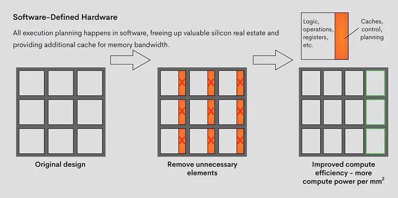 ▲Groq的简化软件定义硬件方法释放了额外的芯片空间和处理能力