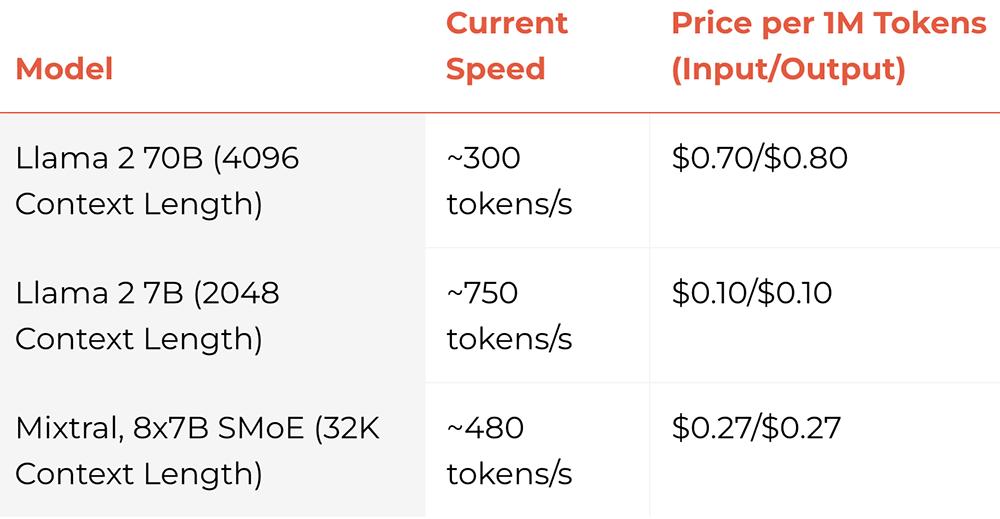 Groq致力于实现最便宜的每token价格,承诺其价格“超过同等上市型号的已发布供应商的任何已公布的每百万tokens价格”。