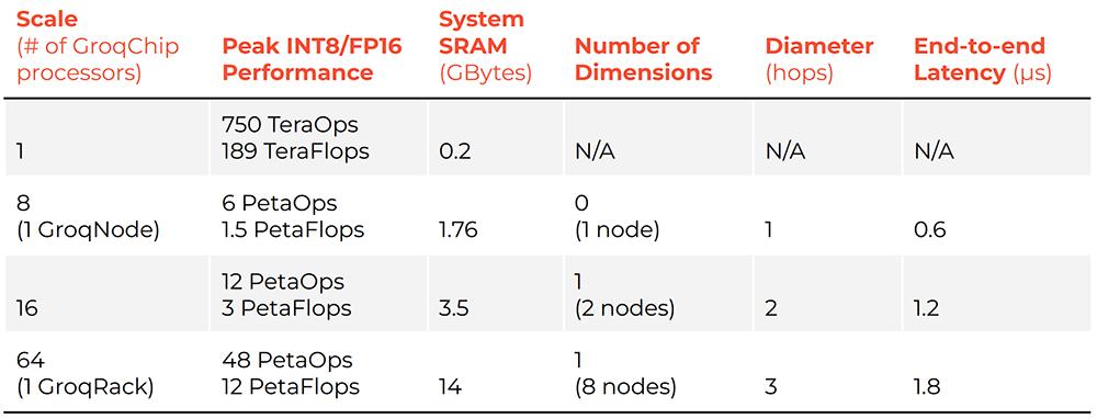 扩展性方面,当Groq芯片扩展到8卡、16卡、64卡,所支持的性能和延迟如下: