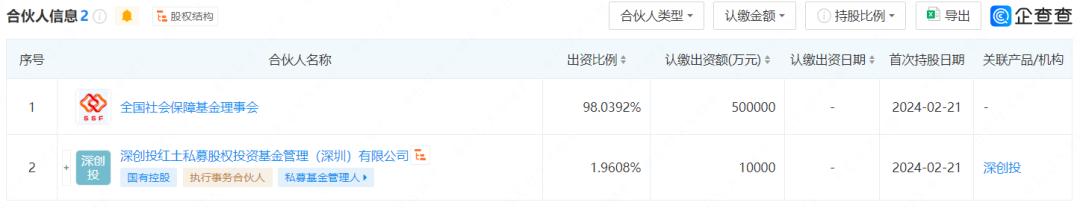基金管理人是深创投红土私募股权投资基金管理(深圳)有限公司,即深创投,其中,全国社保基金理事会认缴出资50亿元,深创投认缴出资1亿元。