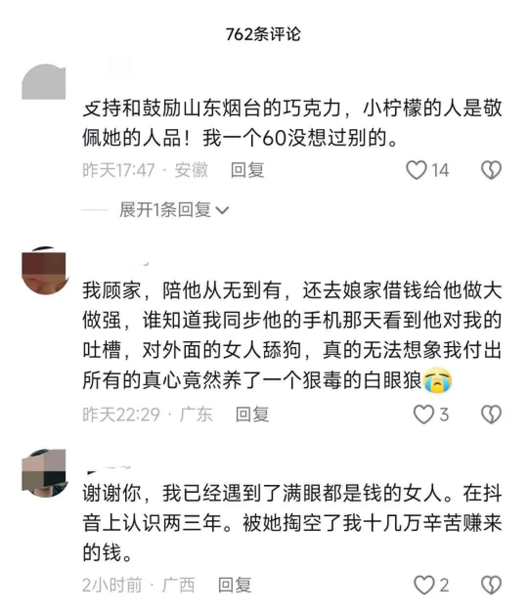 但就是这样的内容,让“巧克力,小柠檬”不仅吸引了1047万粉丝的关注,评论区也有不少网友真情实感的留言。