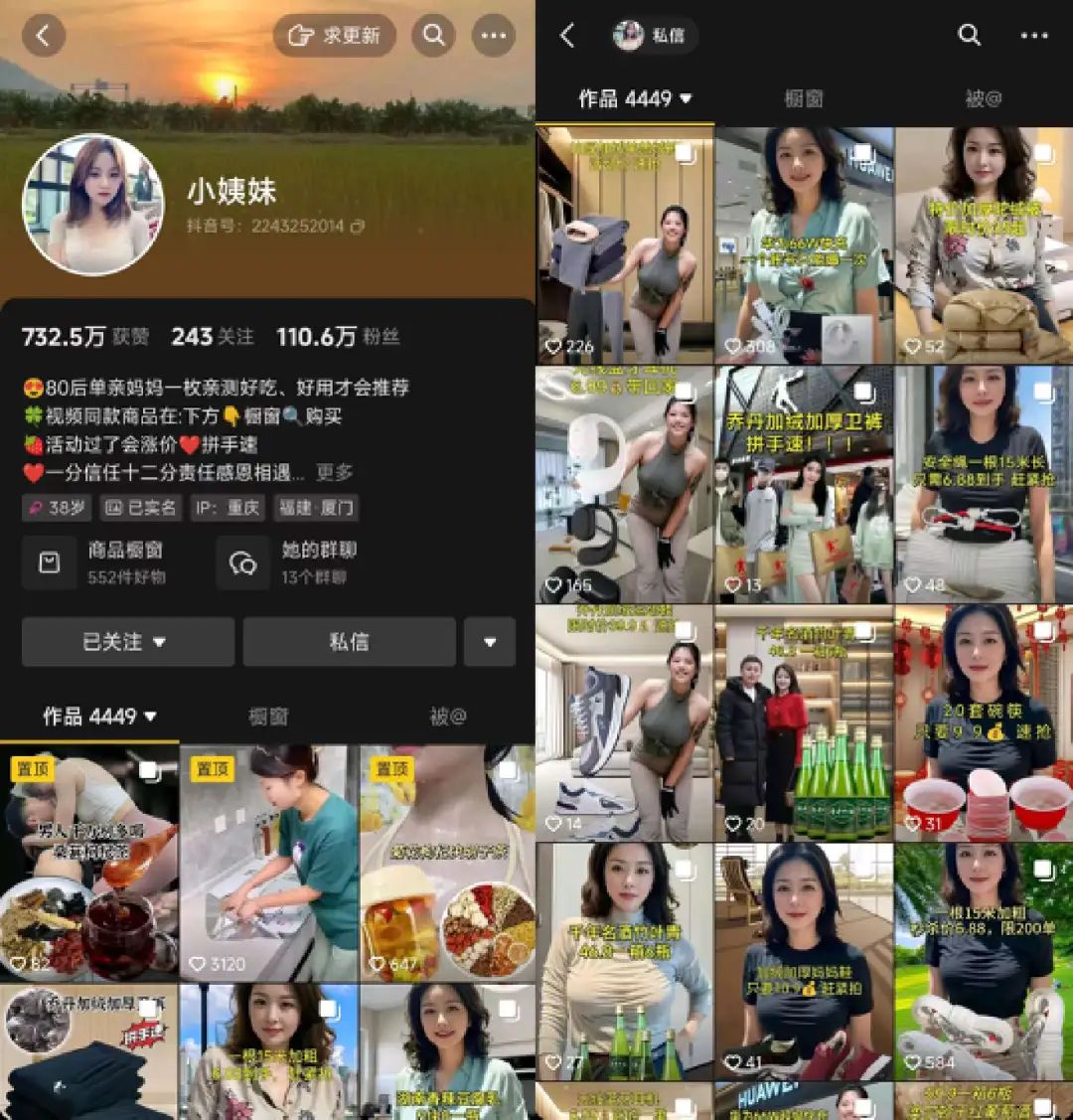 这些账号证明,AI化的内容有着相当数量的受众。在专业电商人士看来,“温柔”这些AI种草博主也许毫无技术含量,但对一些辨别能力较弱的中年男网友来说,“80后单亲妈妈”或许真的很有吸引力。