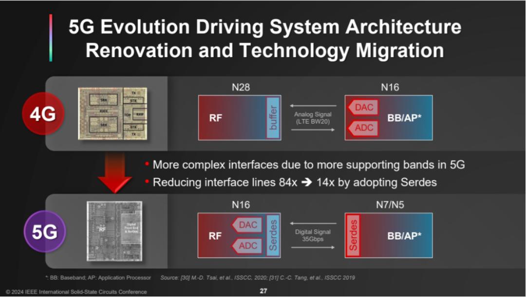 谈到蜂窝射频方面,他提到,当从4G向5G过渡时,为了将数据速率提高十倍,需要结合更多的数字电路,比如先进的ADC、先进的信号处理能力。在这样做时,射频设计、射频收发器设计都可从28nm发展到16nm中收益。