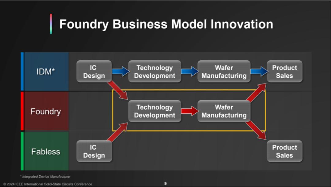 在谈技术前,Kevin Zhang还花费了时间谈到了半导体行业业务的创新——纯代工业务的出现,这项创新从根本上改变了半导体行业的格局。通过从传统的IDM模式中剔除非常复杂、成本高昂的晶圆制造,让无晶圆企业能够专注产品开发和创新。与代工厂的合作,共同极大的加速了行业的创新。